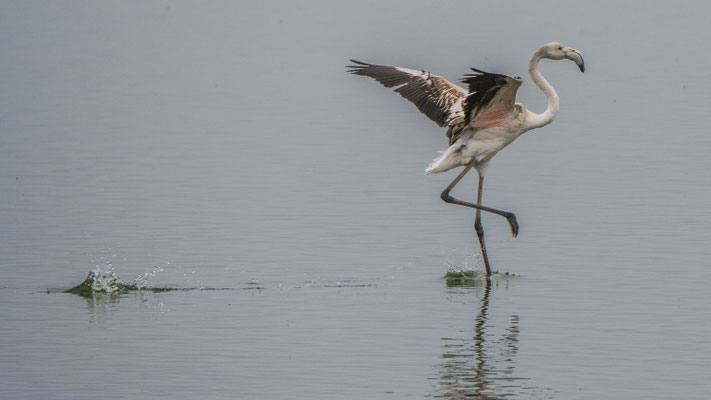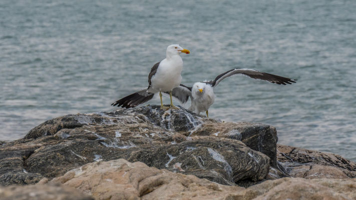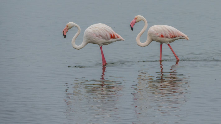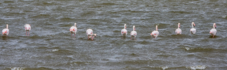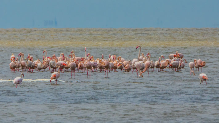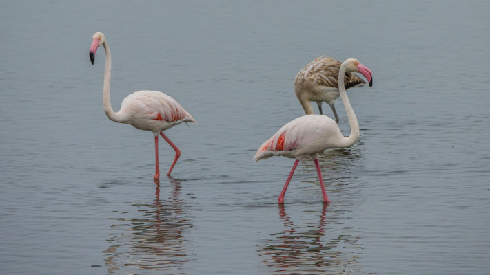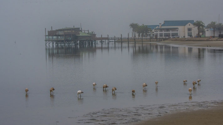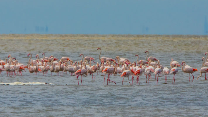 Nachdem wir anderntags dann das Auto übernommen hatten, machten als Erstes einen Ausflug Richtung "Pelican Point". Vorbei an den vielen Becken, in welchem Salz abgebaut wird, fuhren wir weit auf die schmale, sandige Halbinsel hinaus. Links und rechts der Piste tummelten sich unzählige Flamingos, Kormorane, Möwen, Pelikane und andere Wasservögel.