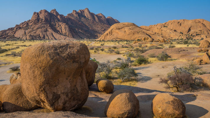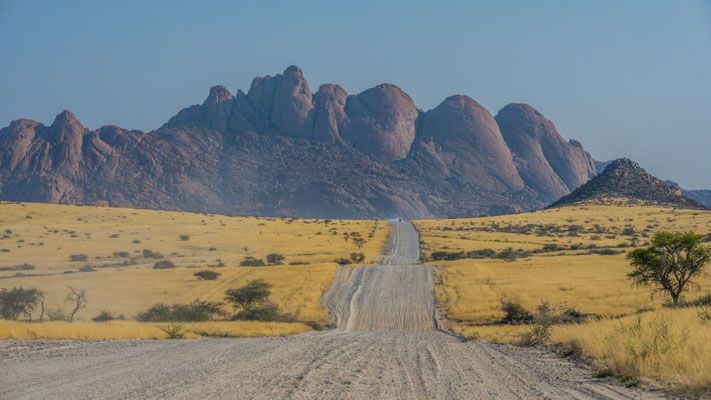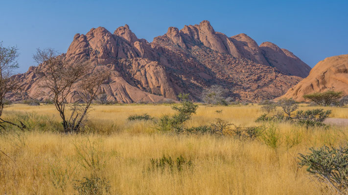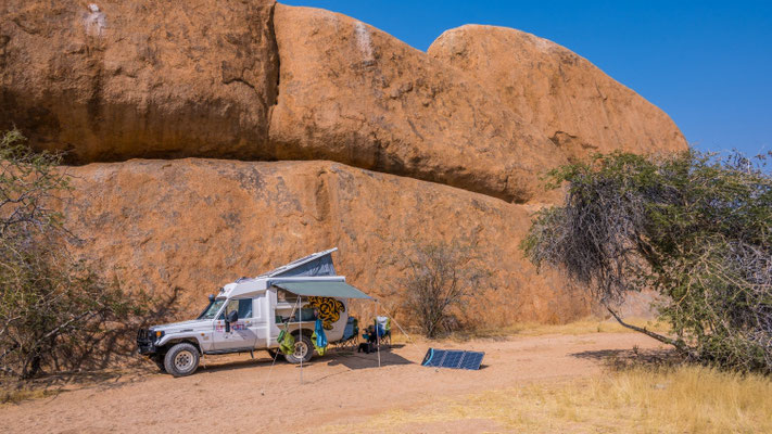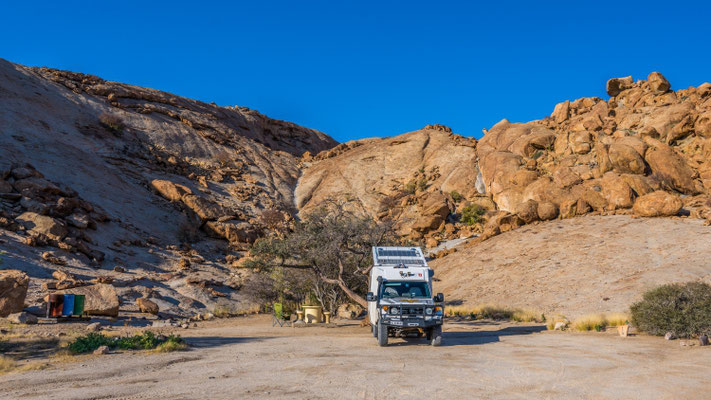 Unser Tagesziel war die Spitzkoppe. Wir erreichten das markante Bergmassiv kurz nach Mittag. Noch waren kaum Campsites besetzt, sodass wir auswählen konnten,