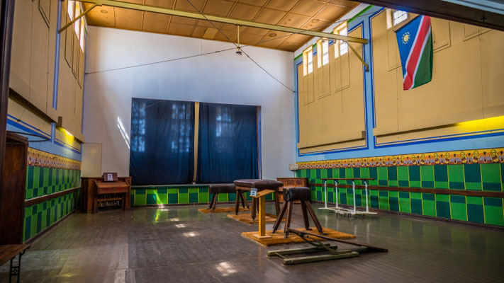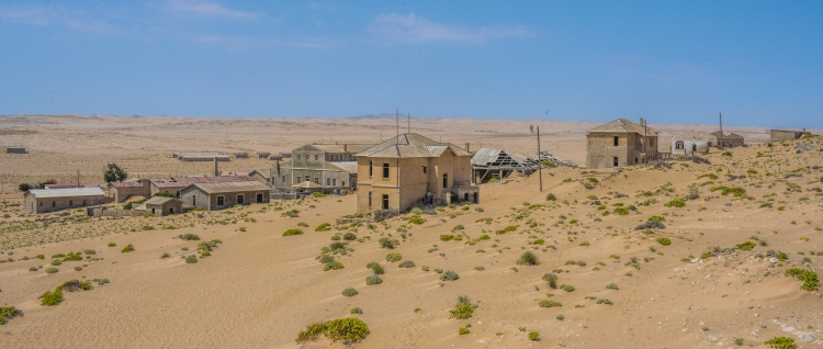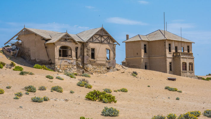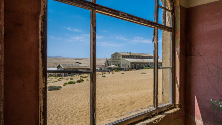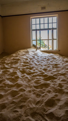 Der nächste Halt war Kolmankuppe, eine Geisterstadt aus den Anfängen des 20. Jahrhunderts. Die vielen Gebäude der ehemaligen Diamantenmine sind in unterschiedlichem Zustand und leider meist leer und dem Zerfall preisgegeben. Die Parterre Räume sind oft mit Sand gefüllt den die stetigen Winde durch Ritzen und zerbrochen Fensterscheiben unermüdlich hineinweht.