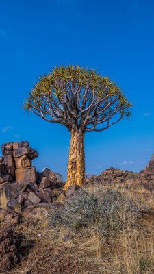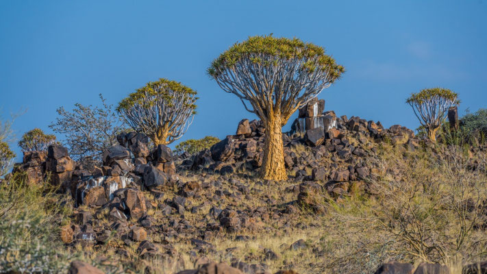 Am Morgen besuchten wir noch den Sukkulenten Garten einige Kilometer weiter im Park drin. Dort wird eine Vielzahl der typischen und heimischen Wüstenpflanzen ausgestellt. Unglaublich die Formen und Farben der Gewächse. Ganz besonders schön empfanden wir die Köcherbäume, aber die werden wir in Namibias Süden noch öfters sehen.