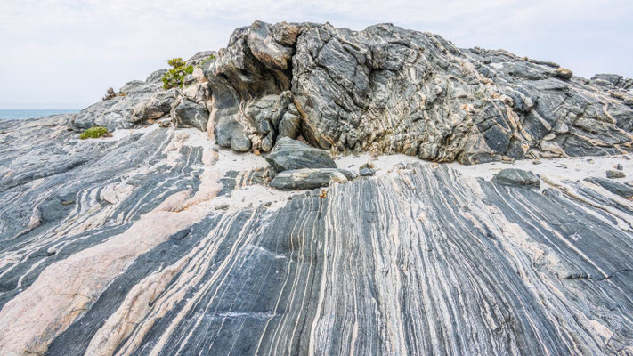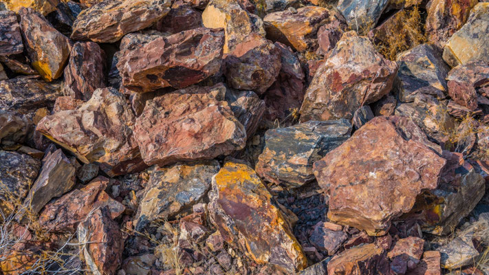 Auf den Karten hatten wir ein Pyropholit Mineralienvorkommen, markiert gesehen. Wir machten den kleinen Umweg und fanden einige Überreste der Abbauaktivitäten. Von dem blauen Mineral fanden wir aber leider keine Spuren, da war wohl zu gründlich gearbeitet worden oder wir waren schlicht nicht geduldig genug.