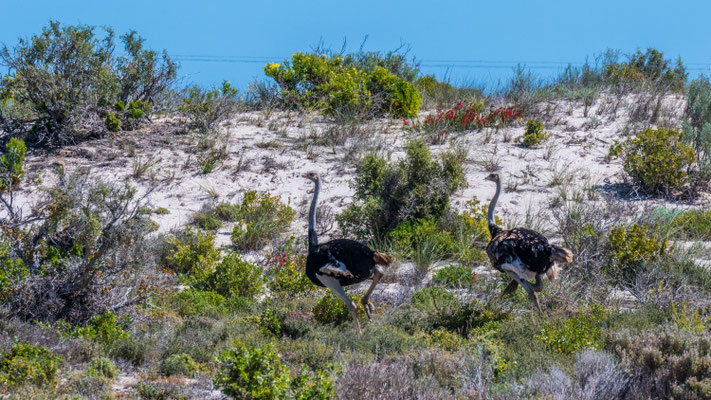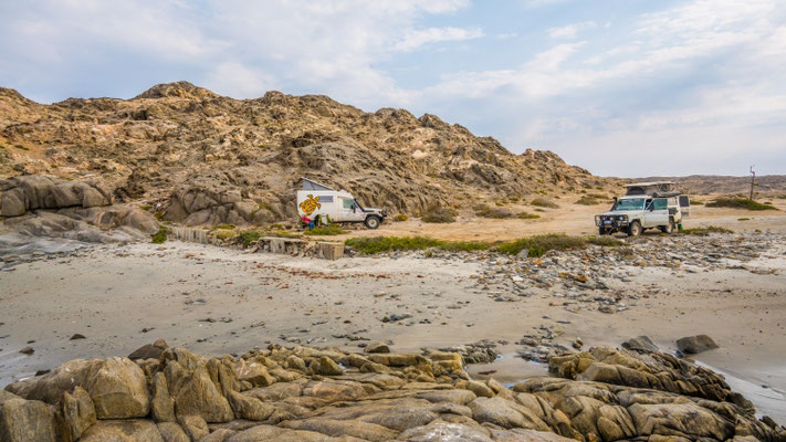 Auch dieser Landstrich ist ein Diamantendabbaugebiet, die Steinchen halten sich offensichtlich nicht an Landesgrenzen. Die Teerstrasse verläuft meist pfeifengerade und ohne grosse landschaftliche Abwechslung. Einzig die immer wieder, in allen Farben blühenden, Blumen erfreuten das Auge und liessen uns hoffen, dass das im Namaqua Nationalpark dann noch viel eindrücklicher sein würde. In Port Nooloth kauften wir fehlende Lebensmittel ein und beschafften uns auch gleich lokale Währung. Bis nach Kleinzee sind es 50 km Rumpelpiste der Rest bis zu unserem Etappenort Koingnaas war dann wieder Teer. Wir quartierten uns im Blue Horizon Camping ein und versuchten den Eigentümer per WhatsApp und Telefon erfolglos zu erreichen. Der wird ja wohl mal hereinschauen und einkassieren wollen, dachten wir. Nun, er kam bis zu unserer Abfahrt nie. Und da die WC-Anlage verschlossen war und wir ja keinen Strom stibitzten, hatten wir kein schlechtes Gewissen, am Morgen ohne bezahlen weiterzufahren.