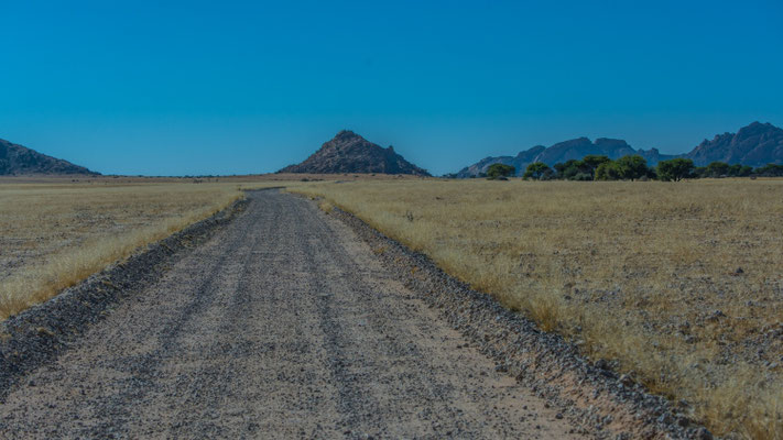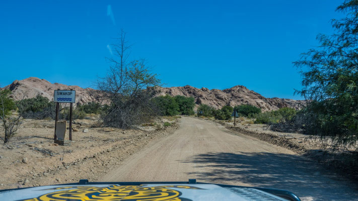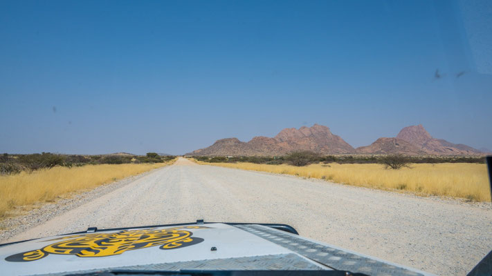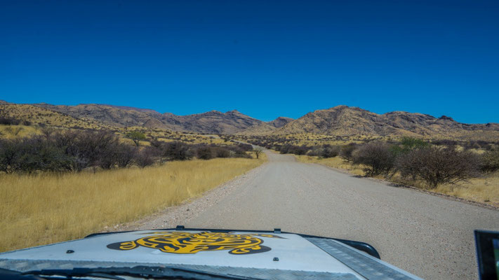 Nachdem wir auch das Permit für den Naukluft National Park beschafft und sonst noch eine paar Kleinigkeiten erledigt hatten. Ging es ostwärts ins Hinterland. Eigentlich hätten wir dem Flussbett des Swakop folgen wollen, aber die Zufahrt war entgegen unserer Karte nicht möglich, alles Privatland und abgesperrt.