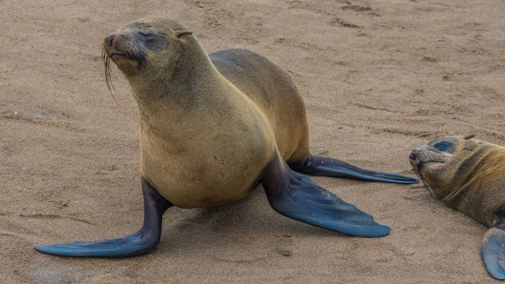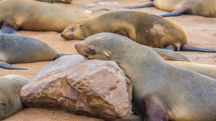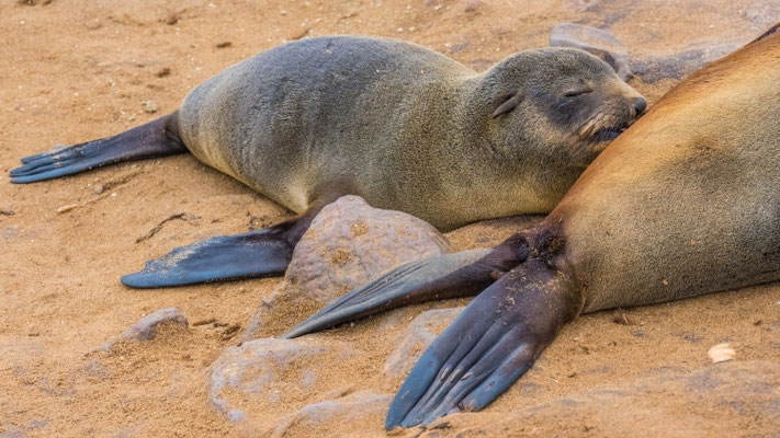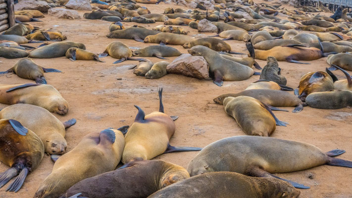 Beim Cape Cross besuchten wir die riesige Seelöwenkolonie. Etwa 250‘000 Tiere leben hier und stinken zum Himmel. Steigt man aus dem Auto verschlägt es einem erst mal fast den Atem, so grausig