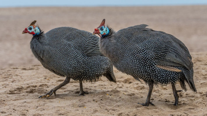 entsprechend auch überall auch Deutschsprechende. Witzig fanden wir die vielen Perlhühner, welche sich vor allem am Strand und in den Parkanlagen tummelten.