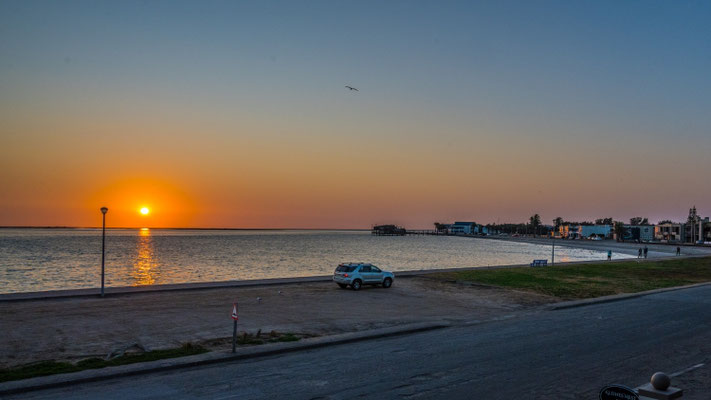Wie schon am Vorabend genossen wir ein feines Nachtessen, diesmal im nahen Restaurant Anchors an der Waterfront. Am Mittwoch schlenderten wir der Bucht entlang. In den gepflegten Parkanlagen blühten unzählige Blumen in allen Farben, der Frühling war definitiv angekommen. Direkt vor unserer Unterkunft konnten wir bei Ebbe vom Zimmer aus den Flamingos beim Fressen zuschauen. Wir verbrachten einige Zeit mit lesen im Zimmer und bald war es auch schon wieder Abend. Erneut machten wir uns zum Nachtessen an der Waterfront auf. Es ist schon erstaunlich günstig im Restaurant zu essen. Ein Hauptgericht schlägt mit etwa 10-15 CHF zu Buche, eine Flasche Rotwein nicht mehr.