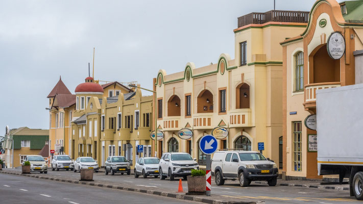 Viele der alten Häuser im Zentrum stammen vom Anfang des 20. Jahrhunderts und sind generell in Deutscher Sprache angeschrieben. Swakopmund gilt als die deutscheste Stadt des Landes und man trifft