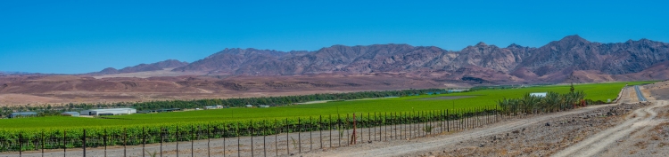 In Ausserkehr kauften wir die notwendigsten Lebensmittel ein. Der Spar Supermarkt hatte aber ein an die Bevölkerung angepasstes Sortiment und wenn man die einfachen Hütten der Ortschaft betrachtet, ist es klar, dass sich hier keine Luxusgüter im Angebot befinden. So gab es keine Butter und auch keinen Rahm. Die Fleischtheke war ebenfalls vor allem mit günstigen Fleischsorten bestückt. Nun, wir fanden auf jeden Fall alles, um nicht verhungern zu müssen. Eindrücklich sind die riesigen Weinberge, welche beidseits der Oranje River bewirtschaftet werden. Wasser hat es hier zum Glück für enmal genug um intensive Landwirtschaft zu betreiben.