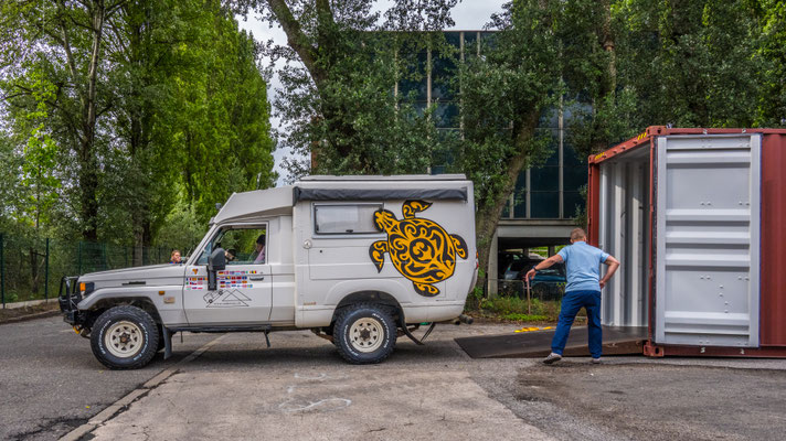 Wir hatten schon früh begonnen, auf den sozialen Medien einen Containerbuddy zu suchen. Schliesslich brachte uns aber Overlander Shipping selber mit einem Kandidaten zusammen. Wir wurden uns auch schnell einig, eine weitere Hürde war genommen. Mitte Juli mussten wir das Auto im Abgangshafen Hamburg zur Verladung bringen. In zwei Tagen fuhren wir durch Deutschland. Der Abfahrtstermin des Schiffs hatte sich schon im Vorfeld um ein paar Tage geändert und kurz vorher gleich noch einmal. Das scheint aber in dieser Industrie eher die Regel als die Ausnahme zu sein. Aber alles blieb im grünen Bereich und der Abgabetermin war auch nicht tangiert.