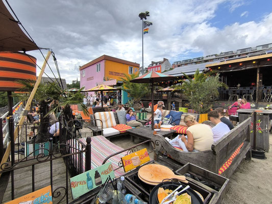 origineller und riesiger Bar und Partybereich geschaffen, wo man den Aperitif mit Blick auf die gegenüberliegenden Hafenanlagen geniessen kann. Ganz in der Nähe liegt das Traditionslokal