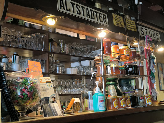Wir fuhren mit der U-Bahn zu den Landungsbrücken und bestiegen eine der Hafenfähren. So kamen wir in den Genuss einer ausgedehnten Hafenrundfahrt, einfach ohne Kommentar, was uns aber nicht wirklich fehlte. Einen Zwischenhalt machten wir im Museumshafen “Oevelgönne“, wo man eine Anzahl alte und Region typische Schiffe bewundern kann. Den Apero nahmen wir im portugiesischen Viertel unweit der Landungsbrücken ein. Man hatte den Eindruck, in Lissabon gelandet zu sein. Überall war alles in portugiesischer Sprache beschriftet und die Restaurants boten eine entsprechende Speisekarte. Wir wollten aber noch einmal typisch Hamburgisch essen. Mitten in der Hamburger Altstadt befindet sich das winzige Restaurant „Altstädter Stube Willig“. Hier kocht und serviert der Chef noch selber. Die Karte ist klein, die Speisen einfach und typisch.