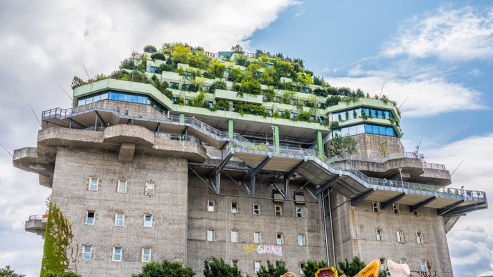 Nach einem feinen Frühstück machten wir uns erneut auf Hamburg zu erkunden. Erster Halt war der „Bunker“. Dabei handelt es sich um einen gewaltigen, mehrstöckigen Betonkoloss welcher im zweiten Weltkrieg 25000 Bewohnern jeweils Schutz vor den Bombardierungen gewährte. Auf dem Dach waren zudem Fliegerabwehrwaffen stationiert um die alliierten Bomber abzuschiessen. In nur 300 Tagen wurde das Bauwerk 1942 mit Zwangsarbeitern erbaut. Heute ist es eine Touristenattraktion und beinhaltet verschieden Geschäfte und Restaurants, ja sogar ein Hotel.