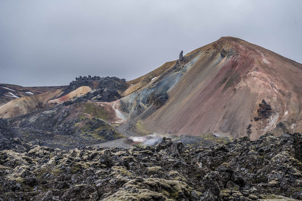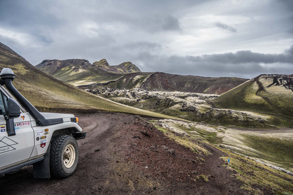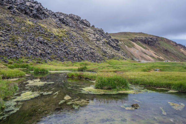 Kilometer bis zum Landmannalaugar waren zwar gut ausgebaut, aber ziemlich wellblechig. Das bekannte Geothermalgebiet mit seinen heissen Quellen war, wie erwartet, stark besucht, da