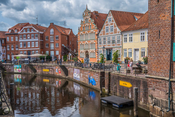 Entlang der nachfolgenden Tagesetappe hatten wir im Nationalpark Harz eine kleine Wanderung eingeplant und wollten die Städte Goslar und Celle näher kennenlernen, aber das Wetter machte uns einen gehörigen Strich durch die Rechnung. Bis auf ein paar wenige Abschnitte regnete es praktisch den ganzen Tag durchgehend, manchmal mehr, manchmal weniger. So landeten wir schliesslich an der Elbe, unweit der Stadt Stade. Der ausgewählte Stellplatz lag zwar hinter dem Deich, welcher jeglichen Ausblick verwehrte, aber im Restaurant Möwennest, welches auf dem Deich stand, genossen wir einen Apero und die Aussicht auf den Fluss. Auf einem kurzen Spaziergang konnten wir unsere von der langen Fahrt eingerosteten Beine etwas bewegen, bevor wir uns das Nachtessen kochten.