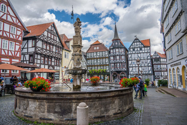 Noch am selben Tag besuchten wir das Städtchen Fritzlar. Auch hier dominierten wunderschöne Fachwerkhäuser, wobei die eindrücklichsten Gebäude rund um den Marktplatz zu sehen waren.