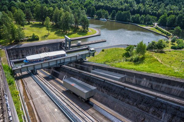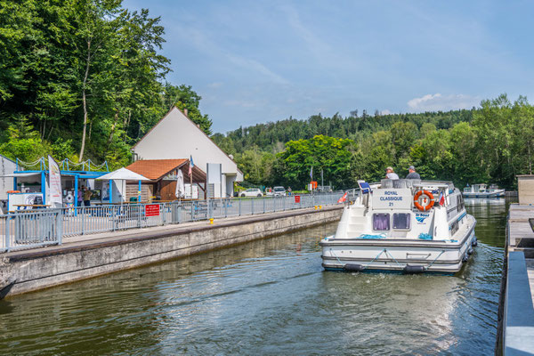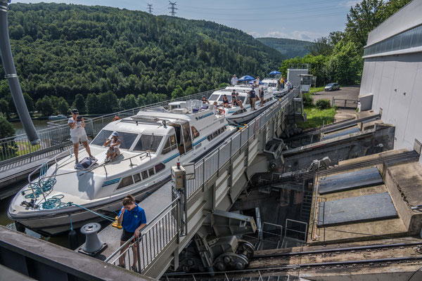 Unser nächster Halt war das Schiffshebewerk bei St. Louis in den Nordvogesen. Die eindrückliche Anlage wurde in vier Jahren gebaut und 1968 in Betrieb genommen. Davor mussten die Kanalboote den Höhenunterschied mittels 17 Schleusen überwinden. Heute transportiert das Hebewerk die Schiffe innert kürzester Zeit über einen Schrägaufzug 45 m in die Höhe und bietet über 8000 touristischen Booten pro Jahr ein einmaliges Abenteuer.