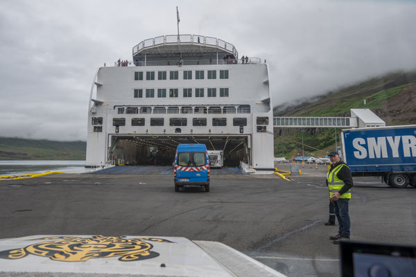 Nach der ruhig verlaufenen Überfahrt lief das Schiff planmässig und bei schönstem Wetter auf Island ein. Ohne weitere Verzögerungen durch irgendwelche Zoll- oder Passkontrollen konnten wir von Bord fahren und unser Abenteuer starten.