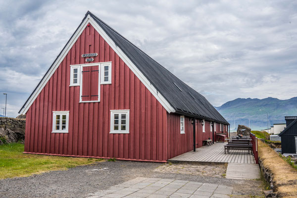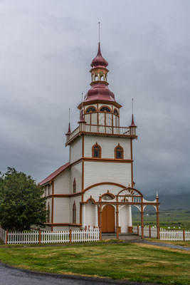 Die gut ausgebaute Teerstrasse führte uns in der Folge durch relativ flache Hügellandschaft nach Pörshöfn. Ein paar Kilometer vor dem Ort besuchten wir die älteste Holzkirche auf Island. Das schmucke Gotteshaus ist umgeben von einem gepflegten und immer noch genutzten Friedhof. Anhand der Grabsteine konnten wir feststellen, dass viele der Verstorbenen ein hohes Alter erreicht hatten, was offenbar auf eine gesunde Umgebung schliessen lässt.