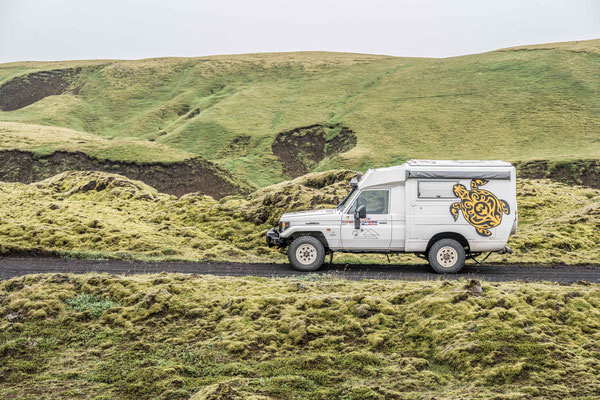 Um wieder auf die Ringstrasse zu gelangen, hatten wir die 4x4 Piste F208 durch die Vulkanlandschaft nördlich des Myrdalsjökull ins Auge gefasst. Die ersten